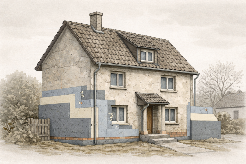 Je nach Gebäude kommen unterschiedliche Dämmarten infrage, etwa Fassadendämmung, Dachdämmung oder Dämmung der obersten Geschossdecke. Jede Variante hat eigene Vor- und Nachteile und eignet sich nicht für jedes Haus gleichermaßen. Die Auswahl sollte immer an die individuelle Bausubstanz angepasst werden. Dämmarten & Materialien im Überblick →
